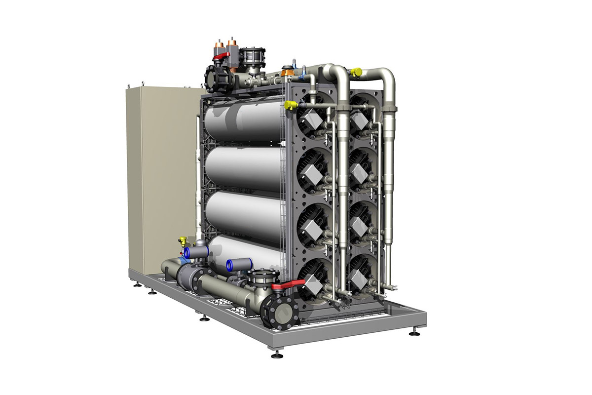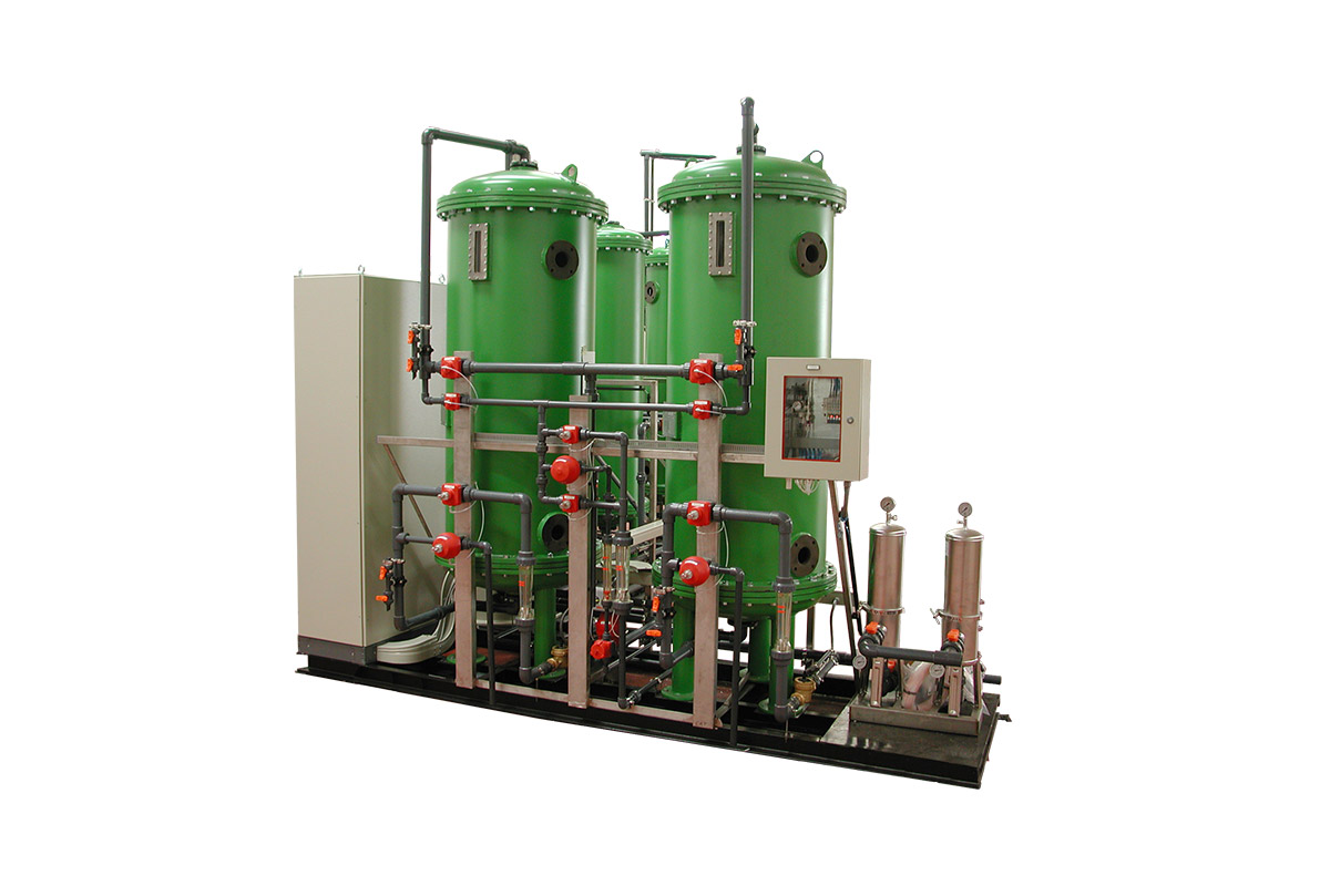 電気脱イオンは、電気的に活性化した媒体と電位を使用してイオン輸送を発生させて流体からイオン性物質を取り除く水処理プロセスです。このプロセスが、従来からあるイオン交換プロセスなどの他の処理方法と異なる点は、酸や苛性ソーダなどの薬品が不要な事です。これまでのイオン交換装置の場合、不純物が樹脂サイトで取り除かれた後も樹脂による排出機能が継続され、容積の減少が見られました。 |